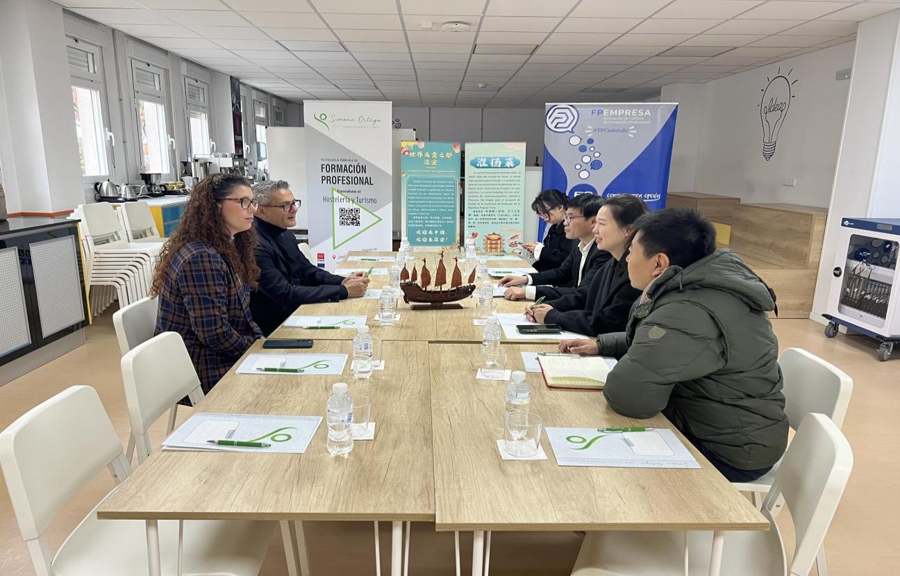 在西班牙访问期间,副校长焦宇知与西蒙·奥尔特加酒店和旅游学校校长弗朗西斯科·哈维尔·加西亚·奥尔蒂斯一同为我校西班牙郑和学院揭牌,郑和学院的成立是我校境外办学的重要突破。随后,双方代表进行会谈,就郑和学院的建设、短期师生交流、联合科研、访问学者,2+1联合培养、职业教育标准输出等进行了深入的交流,并互聘双方优质师资为荣誉讲师。会谈后,代表团一行参观了学校烹饪、西点、酒店管理实验实训室,对学校的培养模式以及现代学徒制的运行方式有了较为深入的了解。