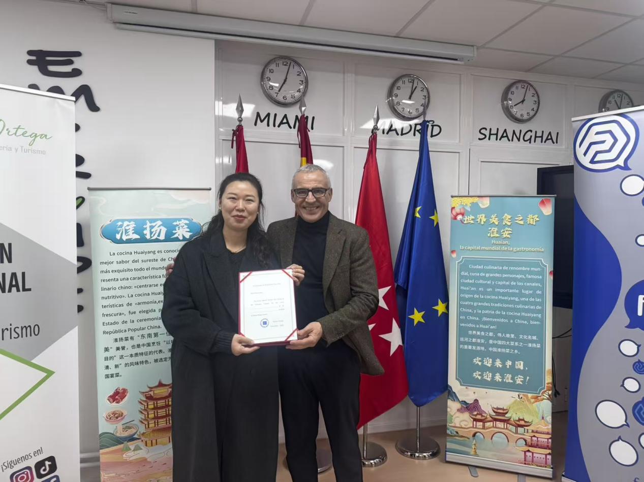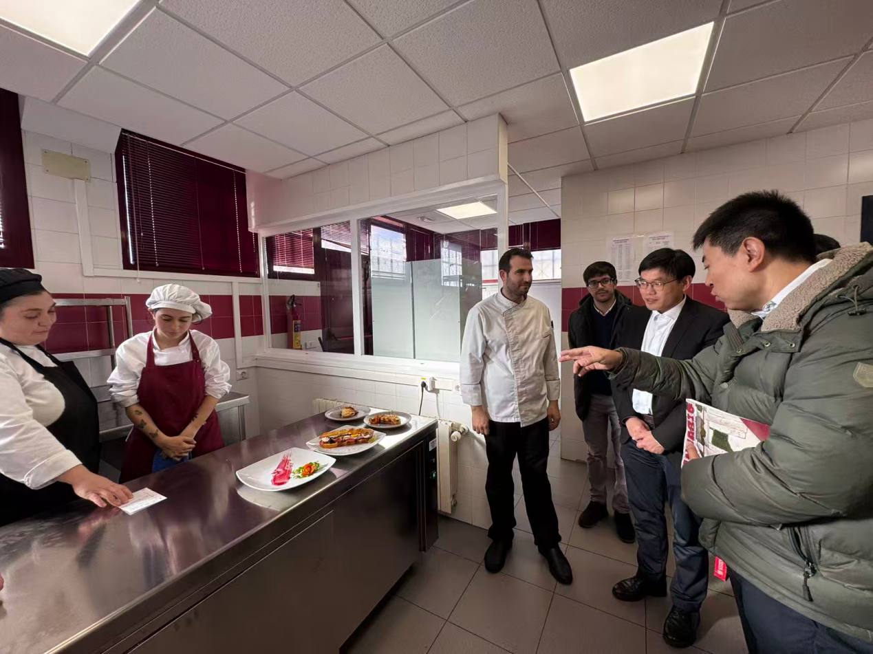 2025年12月1日至4日,副校长焦宇知率团赴西班牙西蒙•奥尔特加酒店和旅游培训学校进行“郑和学院”揭牌仪式,双方围绕郑和学院建设、中餐海外教育及科研协同创新等领域深入交流,达成多项合作共识,为我校国际化办学及中餐烹饪技艺的海外传播注入强劲动力。
